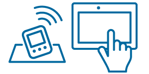 歩数計の裏面をリーダーに接するようにかざしてください。