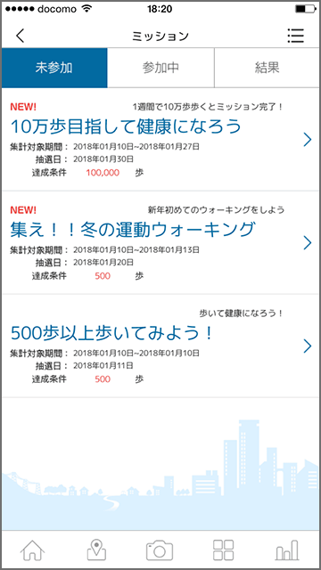 条件を達成することで協賛団体が提供する抽選に応募できるコンテンツです。(スマホアプリ限定機能)