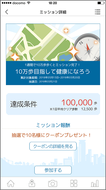 ミッションをクリアして協賛景品(クーポン)が当たる!