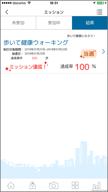 抽選日を過ぎたミッションは、ミッション一覧の「結果」タブに移動し、あとから確認することもできます。