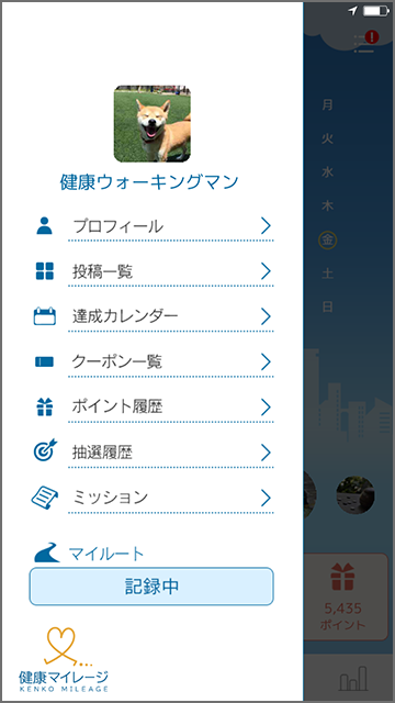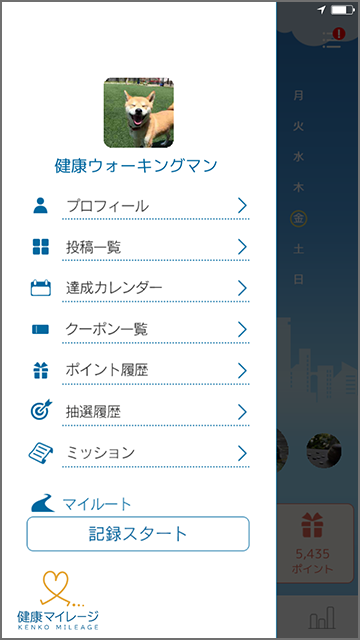 マイページを開き、「記録スタート」ボタンをタップします。